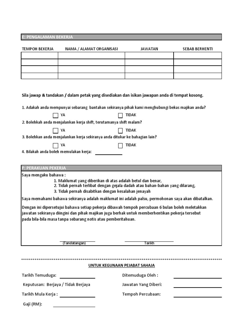 3 tahun pengalaman kerja teori amali dan lisan. Profil karyawan yang sudah berhenti bekerja. Contoh borang permohonan kerja swasta dojoaki from wwwkerjakosongco easy to use and adds a lot of efficiency to my workflow.
